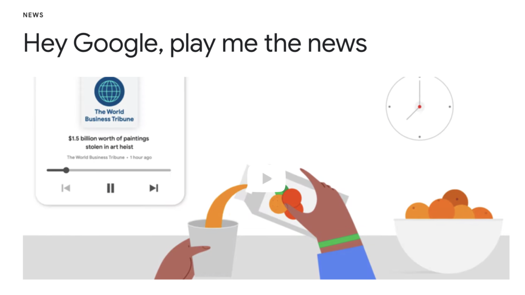 Las consultas informativas constituyen una de las principales demandas a estos altavoces. En España, como constató la Asociación para la Investigación de Medios de Comunicación (AIMC) en 2019, un 42% de los usuarios los emplea para escuchar noticias, solo por detrás de oír música (76%), formular preguntas en general (62%) y consultar la predicción del tiempo (59%). ¿Qué horizonte plantea este escenario? Mediante la orden Hey Google, play me the news (‘Google, dame las noticias’), el asistente virtual Google Assistant enumera los titulares y eventos más destacados en cada momento tomando como base el historial de búsqueda, la ubicación y los intereses del usuario, pero no la veracidad de las fuentes o la presencia de los atributos sobre los que se construyen profesionalmente las noticias.