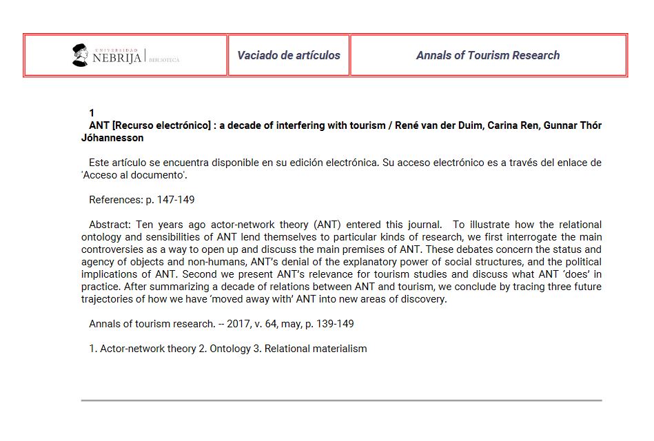 Para terminar, también contamos con el vaciado puntual de artículos, que no es otra cosa que lo mismo que os hemos explicado antes, pero sin esa continuidad que le damos a las revistas antes mencionadas.