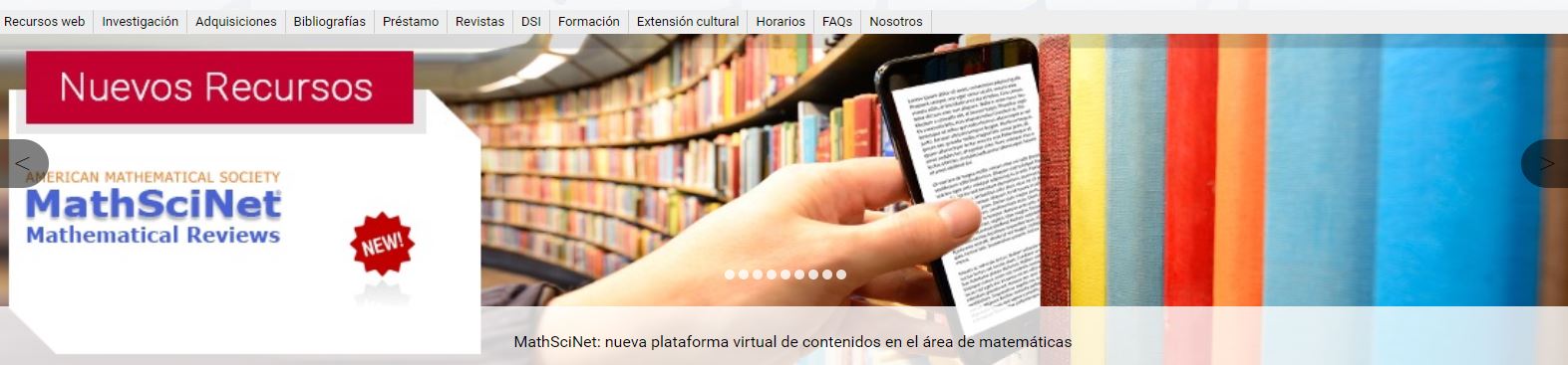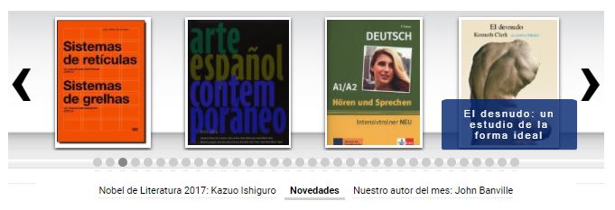 Imagen:Vista del carrusel o galería de imágenes. Fuente: Catálogo-OPAC ~ Web Portal (Red de Bibliotecas Universidad Nebrija).