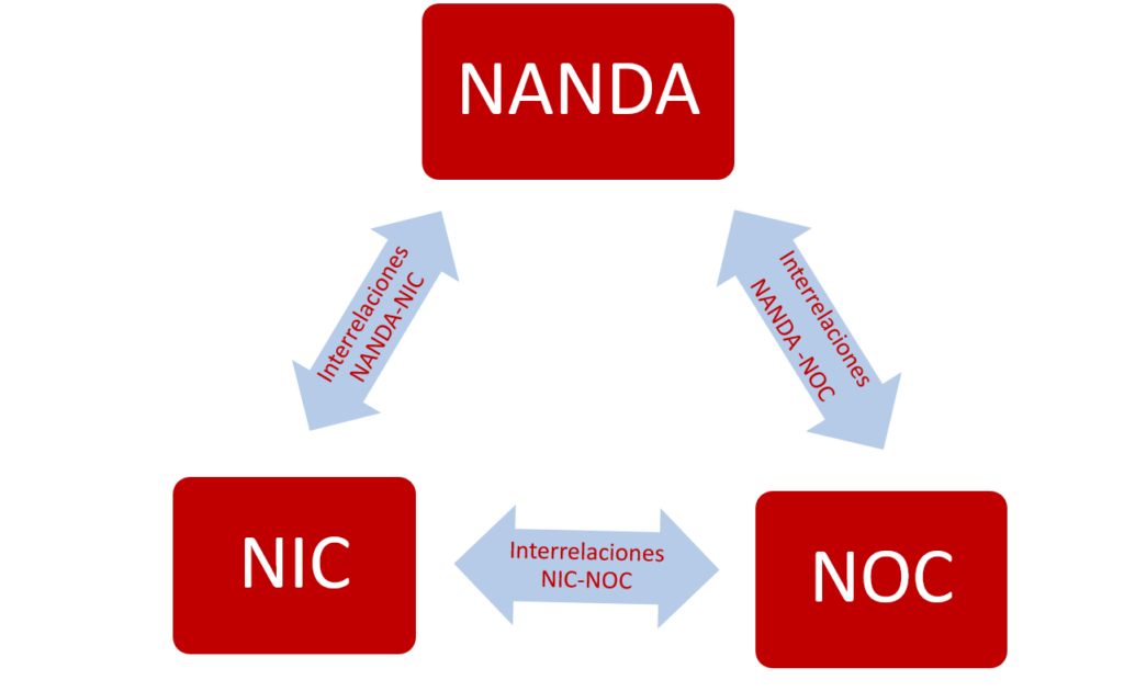 NANDA se refiere a la taxonomía creada por la North American Nursing Diagnosis Association para clasificar los diagnósticos enfermeros (aunque desde 2002 el nombre de la asociación es NANDA-I pues ya no es una asociación únicamente norteamericana y han conservado el acrónimo sólo como una marca por su familiaridad entre los profesionales); NIC (Nursing Interventions Classification) y NOC (Nursing Outcomes Classification) son, respectivamente, la Clasificación de Resultados de Enfermería y la Clasificación de Intervenciones de Enfermería creadas por el College of Nursing de la Universidad de Iowa.