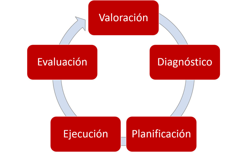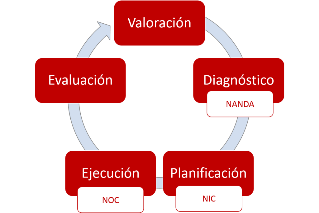 Podemos ver que es un ciclo cerrado, que se retroalimenta gracias a la etapa de evaluación, lo que lo convierte en un proceso de mejora continua que persigue el incremento de la calidad de dichos cuidados.