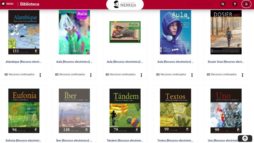 Todas estas revistas están accesibles electrónicamente, pero restringidas a los usuarios de la Universidad Nebrija, ya sean estudiantes, profesores o PAS. Para acceder a su contenido online, habrá que identificarse previamente en nuestro Catálogo-OPAC ~ Web Portal con el usuario y la contraseña de nuestra cuenta Nebrija.