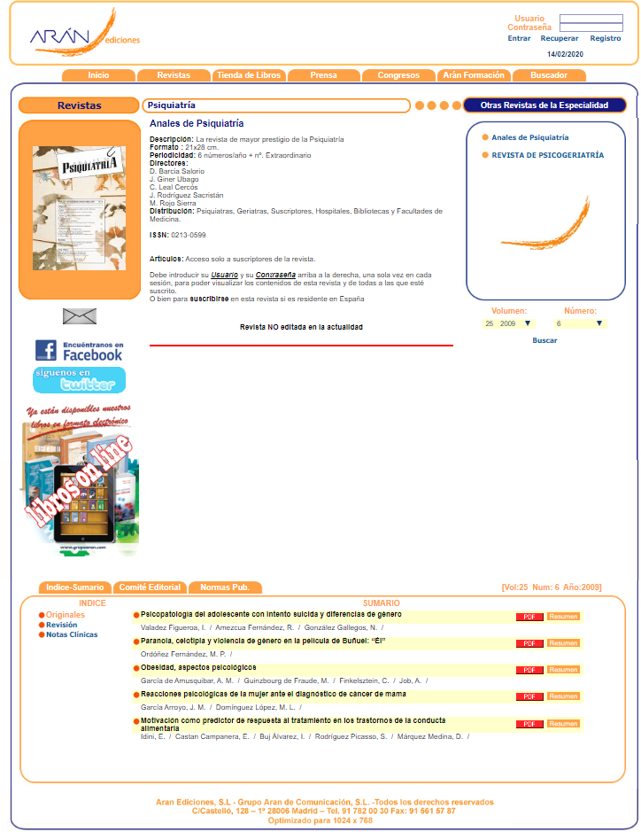 Imagen: Datos bibliográficos de la revista. Fuente: Medes