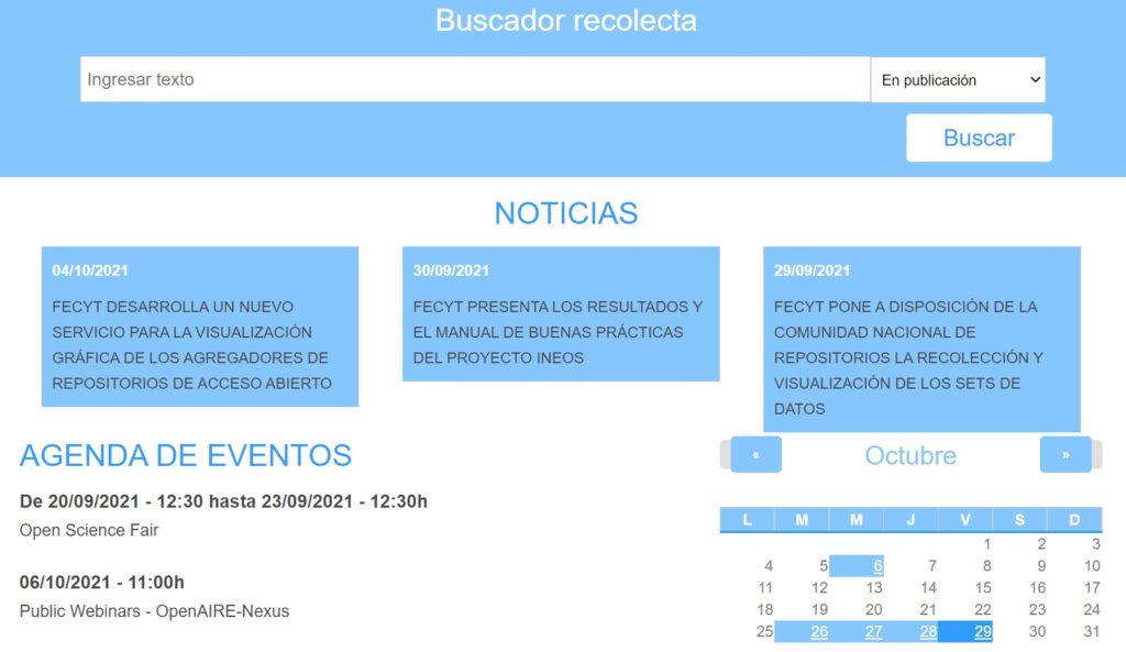 Imagen: Vista de la página principal de Recolecta. Fuente: Recolecta