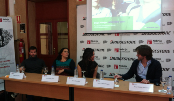 Madrid, 04 de diciembre de 2013. “Intuición, ingenio, audacia, ambición, agilidad, flexibilidad, valentía y perseverancia… Hacer realidad un proyecto emprendedor no es solo cuestión de dinero, sino también, y principalmente, de todos estos otros ingredientes. Así se ha puesto de manifiesto en la “III Conferencia Bridgestone: Jóvenes Emprendedores” celebrada en la Universidad Nebrija y que ha contado con las experiencias de cuatro emprendedores, Diego Hidalgo, fundador y CEO de Amovens, plataforma online de coches compartidos; Teresa Romo, fundadora de Tips4pics, escuela de fotografía 2.0; Elena Dalmau, fundadora de Teprefierocomoamigo, empresa de creatividad y diseño; y Ángel Luengo, fundador de 24Symbols, plataforma para leer libros en Internet; estos tres últimos antiguos alumnos de la Universidad Nebrija.