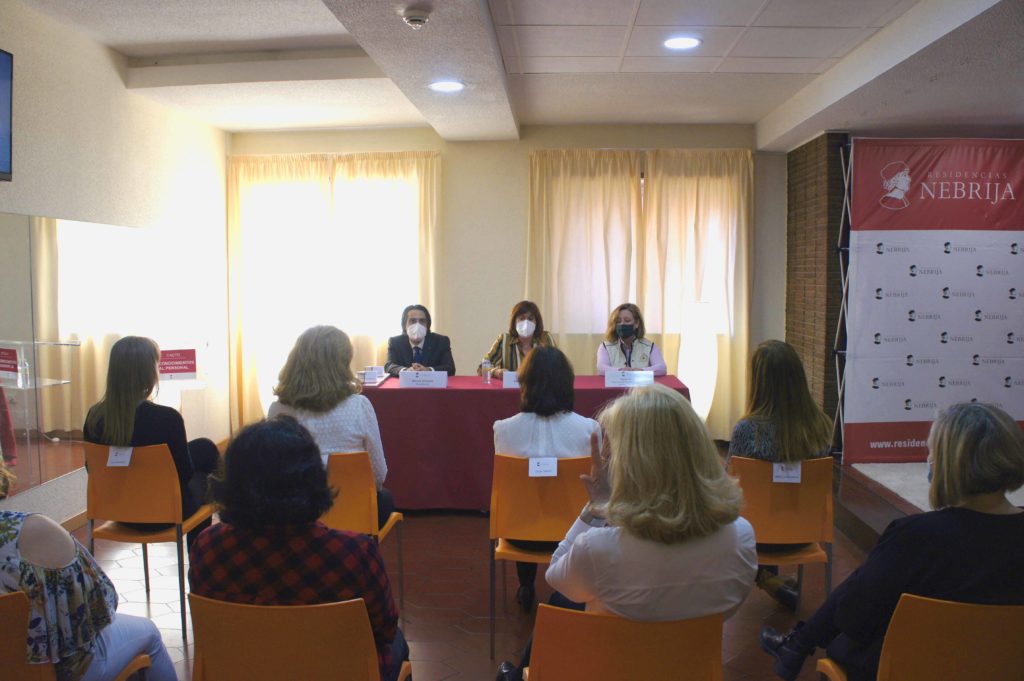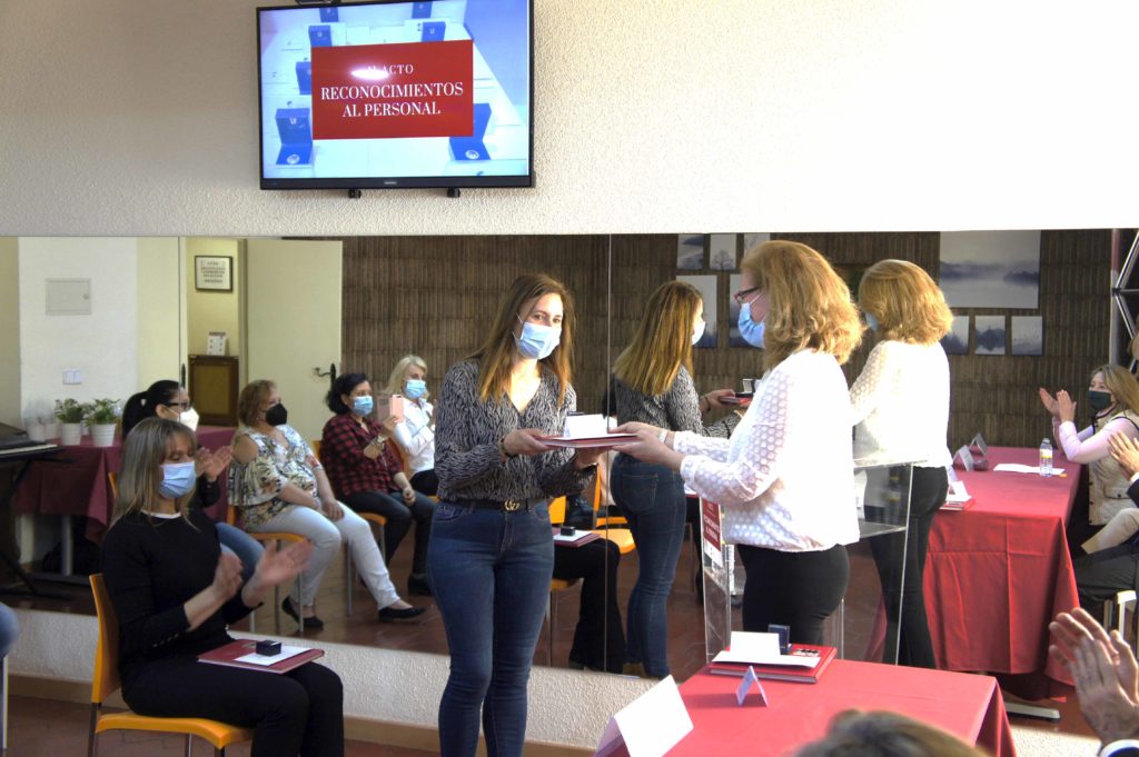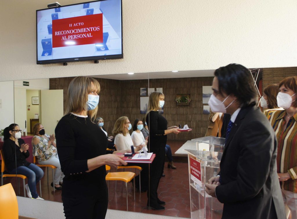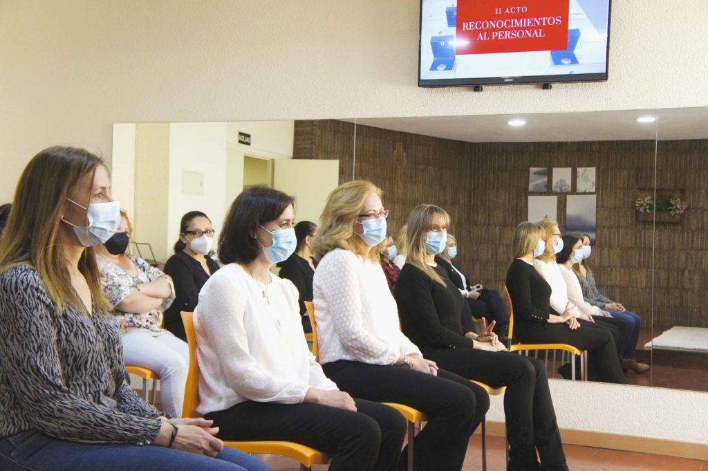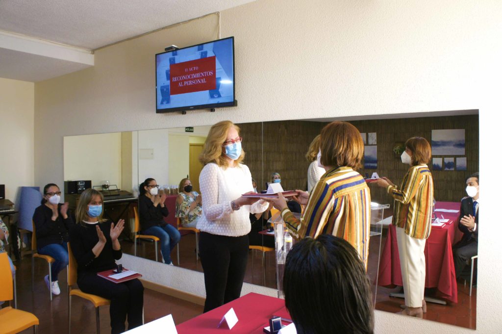 El acto se celebró cumpliendo con todas las medidas de prevención covid para garantizar la seguridad y protección de todos los asistentes. Contó con la presencia de los responsables de Residencias Nebrija, Marcos González, Elena Sánchez y Mari Paz Jiménez y fue dirigido por la Directora de la institución Susana Castroverde. La reducción de aforo permitió realizar un acto cercano y emotivo en el que se destacó la gran labor del personal homenajeado especialmente en su trato y cuidado hacia los residentes. En conmemoración se les hizo entrega de la insignia de Residencias Nebrija.