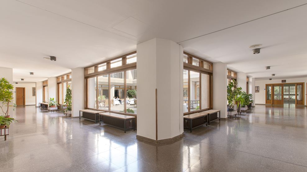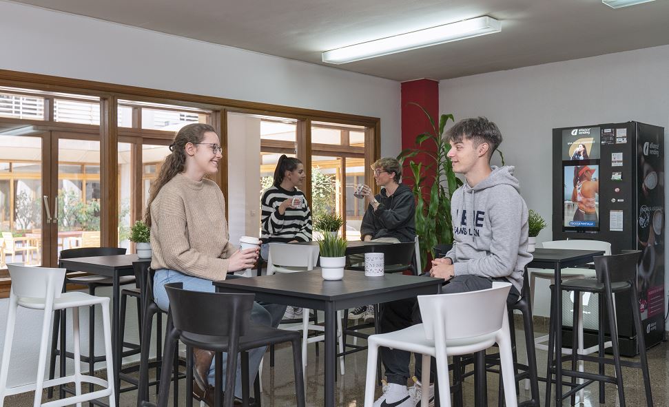 Cuenta con unas espaciosas instalaciones que incluyen zonas ajardinadas, parking propio, cafetería, salas de estudio y coworking, salón de conferencias y salas de ocio y tv, entre otras.