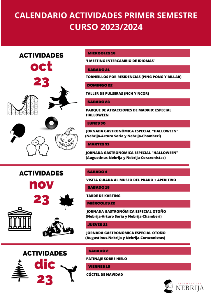 Ahora que ya ha arrancado el curso, y tras el entusiasmo con el que habéis participado en las actividades de bienvenida de septiembre, os presentamos el calendario de actividades programadas para este primer semestre.