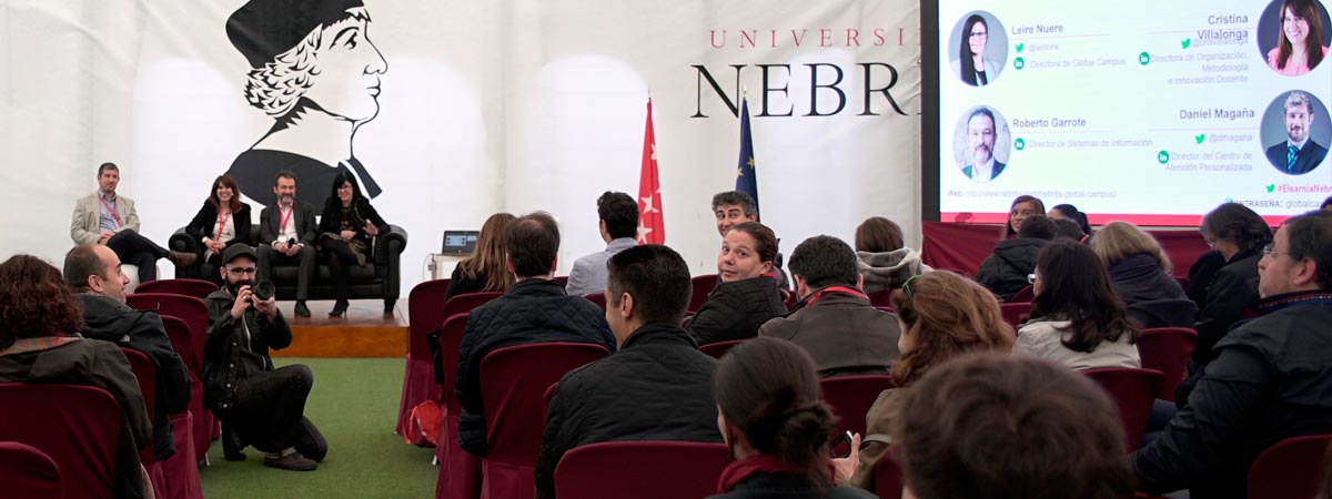 Las tecnologías docentes de la Universidad Nebrija logran que el camino de aprendizaje del estudiante sea una experiencia sencilla repleta de posibilidades. Global Campus Nebrija, que vela por la puesta a disposición de todos estos recursos a la comunidad Nebrija, presenta, de forma visual, el campus virtual (Blackboard, Learn y Collaborate), el sistema de vídeos (Kaltura), la plataforma de aprendizaje de idiomas (Rosetta Stone), la nube Nebrija (“cloud” de Microsoft con OneDrive y Odysseus –biblioteca digital-), así como todas las redes sociales que dinamizan y enriquecen los estudios de la Universidad.