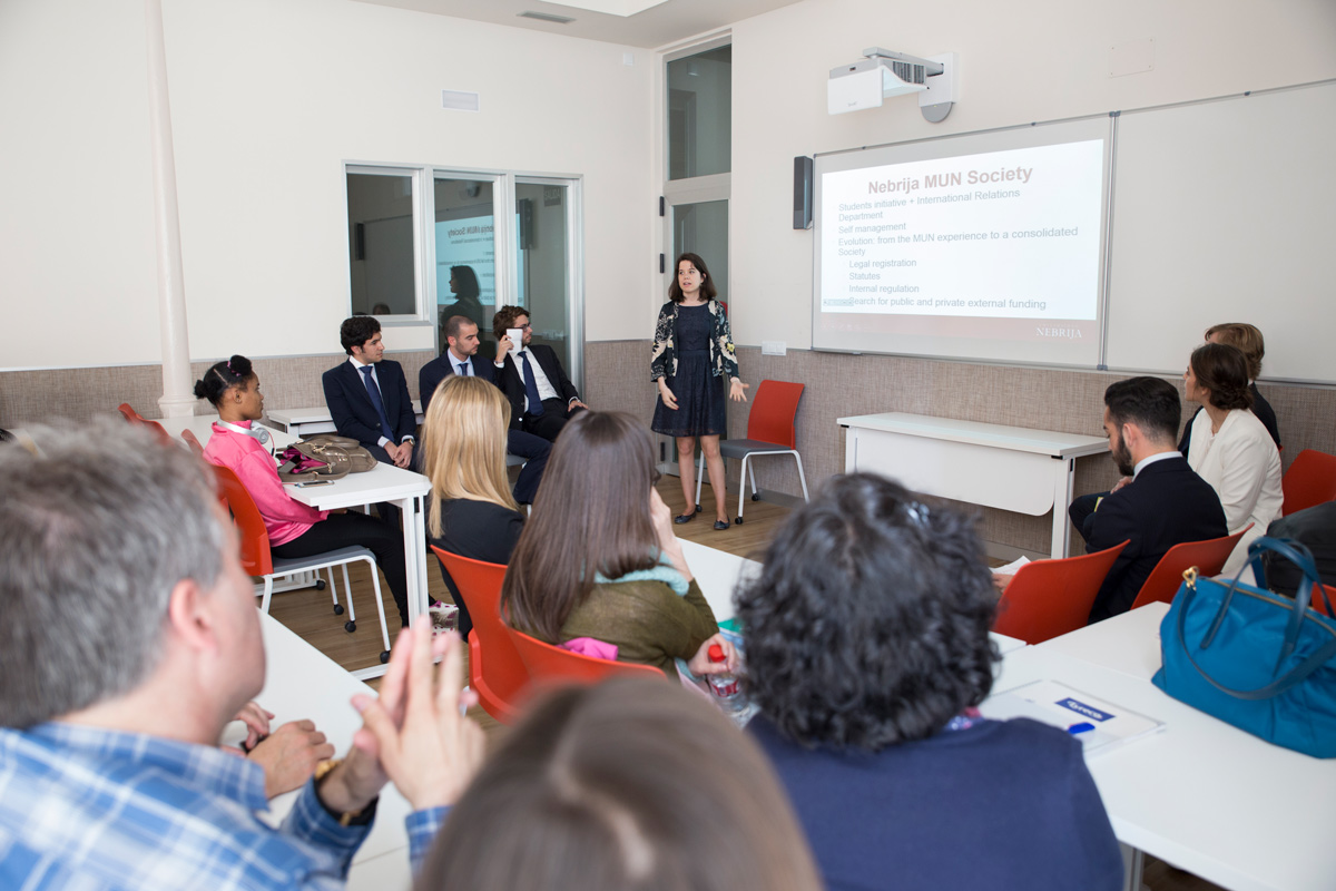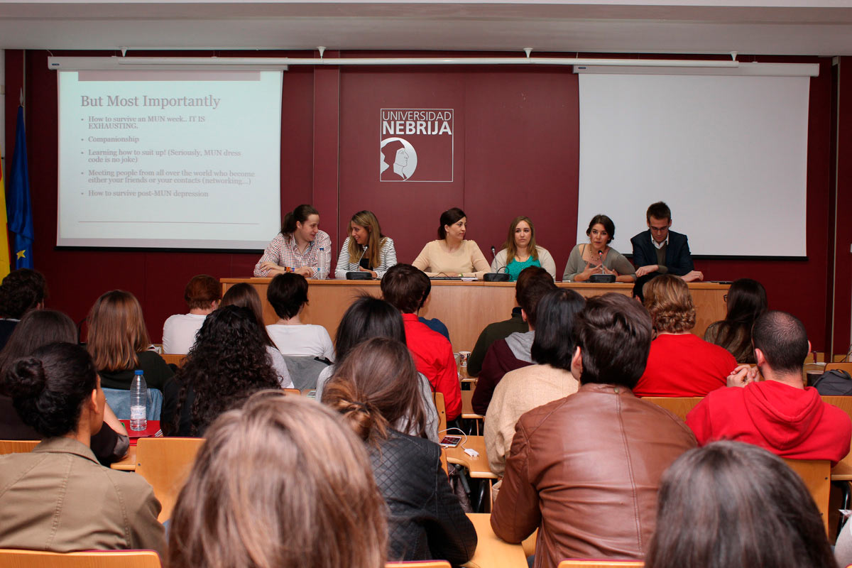 NebrijaMUN Society es un grupo dedicado a realizar debates siguiendo el modelo de Naciones Unidas. Podemos decir que es una de las actividades más gratificantes y profundas que los alumnos de la universidad pueden practicar, aunque en un primer momento parezca que está únicamente enfocado a los alumnos de relaciones internacionales no existen restricciones, ya que cualquiera puede participar independientemente de su grado.