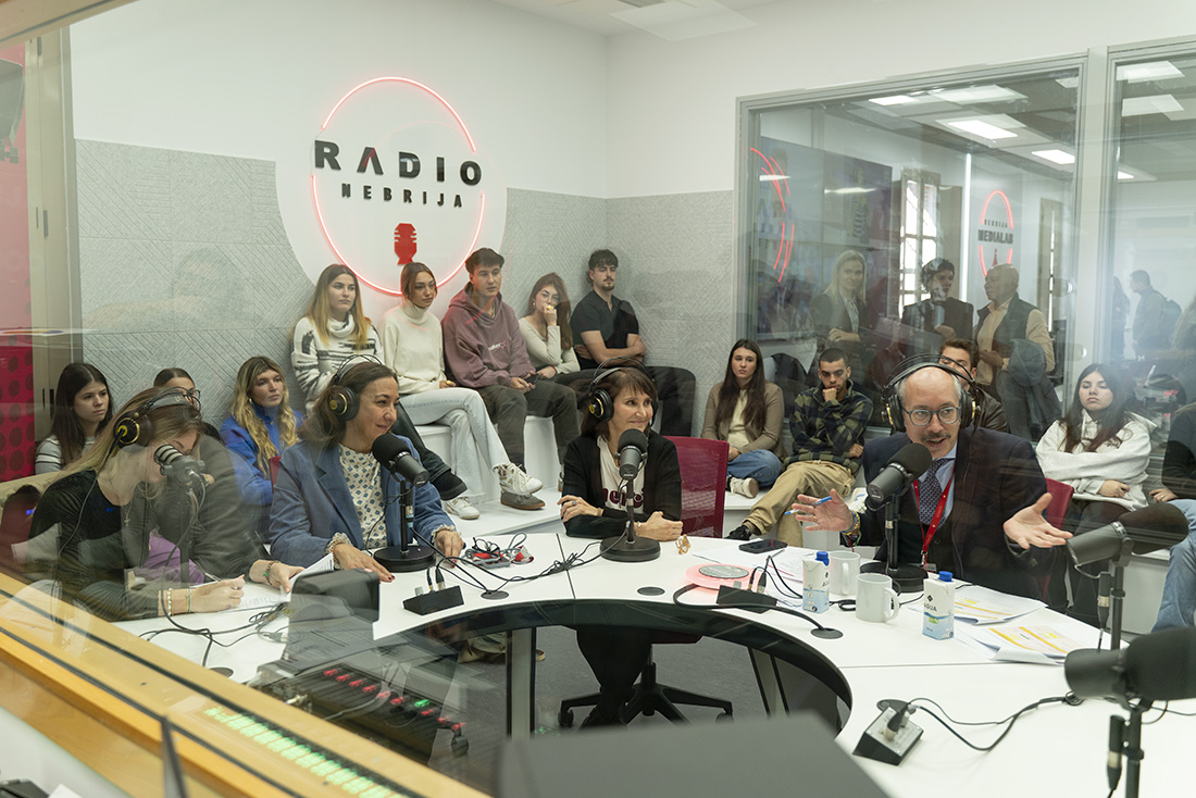 Las primeras palabras, a las nueve de la mañana, correspondieron a la Universidad Nebrija. Laura M. Otón, directora del Máster en Radio, Pódcast y Audio Digital, y Eduardo Castillo, director del Grado en Periodismo -los conductores del especial- y los estudiantes Rubén Criado y Lucía Pérez Caballero se refirieron a un medio que “sigue transformando las sociedades, impactando en el territorio y evolucionando en la era digital”.