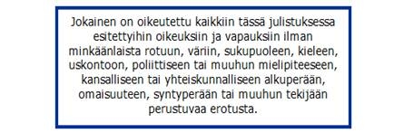 Una vez más, ofrecemos un ejemplo discursivo, esta vez en finés, para que el paciente lector pueda hacerse una idea aproximada de lo que percibe nuestro alumno Hassan ante un texto semejante en español, cuyas letras entiende a la perfección pero cuyo significado global se le escapa: