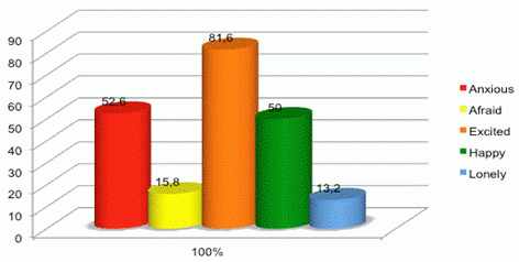 First of all, we wanted to obtain information about how the participants remembered feeling when they arrived in Madrid. The attitude and the positive predisposition help enormously to adapt to a new cultural environment. As it can be seen in the graph, most of our students were excited, more than half of them were anxious, and only a small percentage felt afraid and lonely. All these feelings are normal and correspond to the typified reactions when facing new situations.