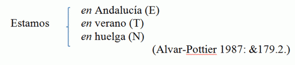 A la luz de la evolución histórica, la consideración semántica de la preposición permite diferenciar en el conjunto prepositivo latino, que está presente también en español y en las lenguas romances, la ordenación en tres sistemas, en “tres campos semánticos: el espacial (E), el temporal (T) y el nocional (N) (esto es ni espacial ni temporal)4, como en el ejemplo: