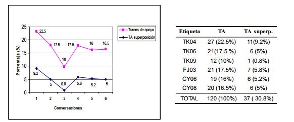 TABLA 1: Turnos de Habla y Turnos de Apoyo