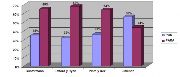 Tabla 1. Porcentaje de apariciones de por-para en los cuatro estudios