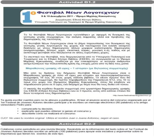Además, en este nivel A de usuario básico, los enunciados de las actividades vienen redactados tanto en griego como en la lengua extranjera que se examina, con el fin de evitar la no consecución de la tarea por falta de entendimiento del candidato.
