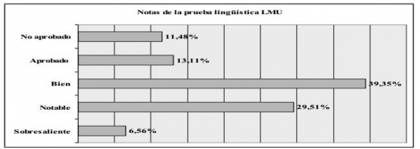 En segundo lugar, tomamos los resultados de la prueba lingüística de nivel de NH2 de la Universidad LMU de Múnich para comprobar si existe una correlación entre los conocimientos lingüísticos y un tipo determinado de motivación dominante (objetivo III).