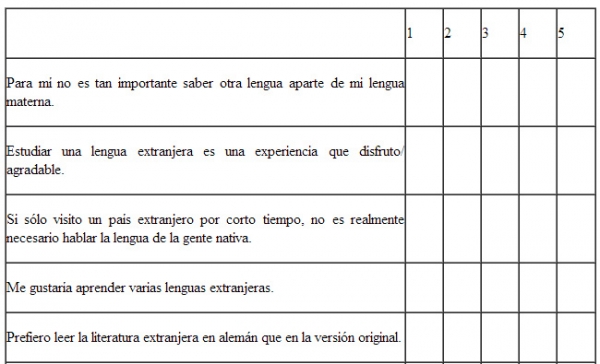Grotjahn, R. (2004). "Tests and Attitude Scales for the Year Abroad” (TESTATT): Sprachlernmotivation und Einstellungen gegenüber Sprechern der eigenen und der fremden Sprache. Zeitschrift für Interkulturellen Fremdsprachenunterricht [en línea]. Disponible en: http://www.ualberta.ca/~german/ejournal/Grotjahn2.htm. [Fecha de consulta: 06.01.06].