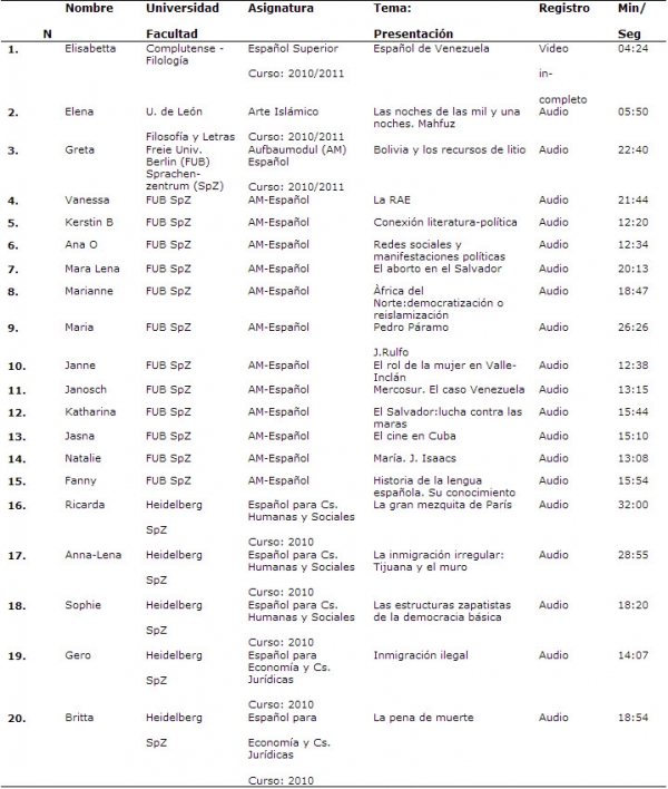 Tabla 3. Corpus académico oral en E/LE: PAO de estudiantes alemanes