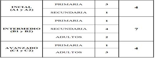 Como podemos observar, esta muestra de sujetos corresponde con el primer, el segundo y el cuarto nivel de edad/formación considerado en los estudios de nativos que hemos comentado anteriormente.