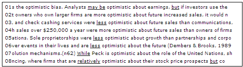 However, corpus linguistics also indicates that these features of unit of meaning are probabilistic. In the case of semantic prosody, for instance, the verb “afford” is only “more-often-than-the-average negative” (Hunston 2011, pp.81), although it occurs equally frequently in positive and in negative clauses. This is largely because the overall ratio of positive to negative clauses is about 9:1 (Halliday, 1993; Matthiessen, 2006); thus, a lexical item that occurs evenly in the negative and positive is highly skewed toward the negative.