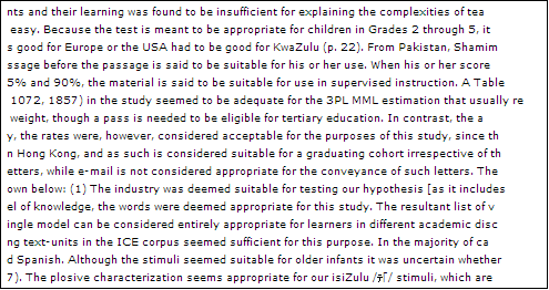 Chafe, W., & Danielewicz, J. (1986). Properties of spoken and written language. In R. Horowitz & S. J. Samuels (Eds.), Comprehending oral and written language (pp. 83-113). New York, NY: Academic Press.