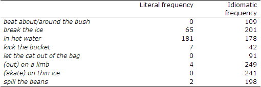Table 1. Literal and Idiomatic Meanings for FEIs (Moon, 1998, p. 182)