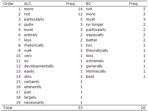 [1] The comparative value—one of three evaluative values (viz. comparative, subjective, and social)—indicates a situation in which something is compared to the disciplinary, cultural, or social norm (Labov, 1972; Thompson & Hunston, 2000).