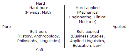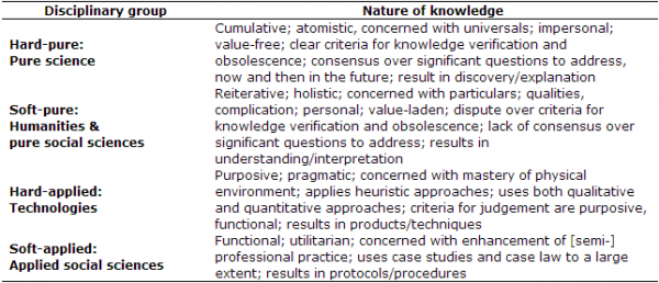 Figure 3. The Nature of Knowledge and Disciplinary Grouping in Becher & Trowler (2001, p.36)
